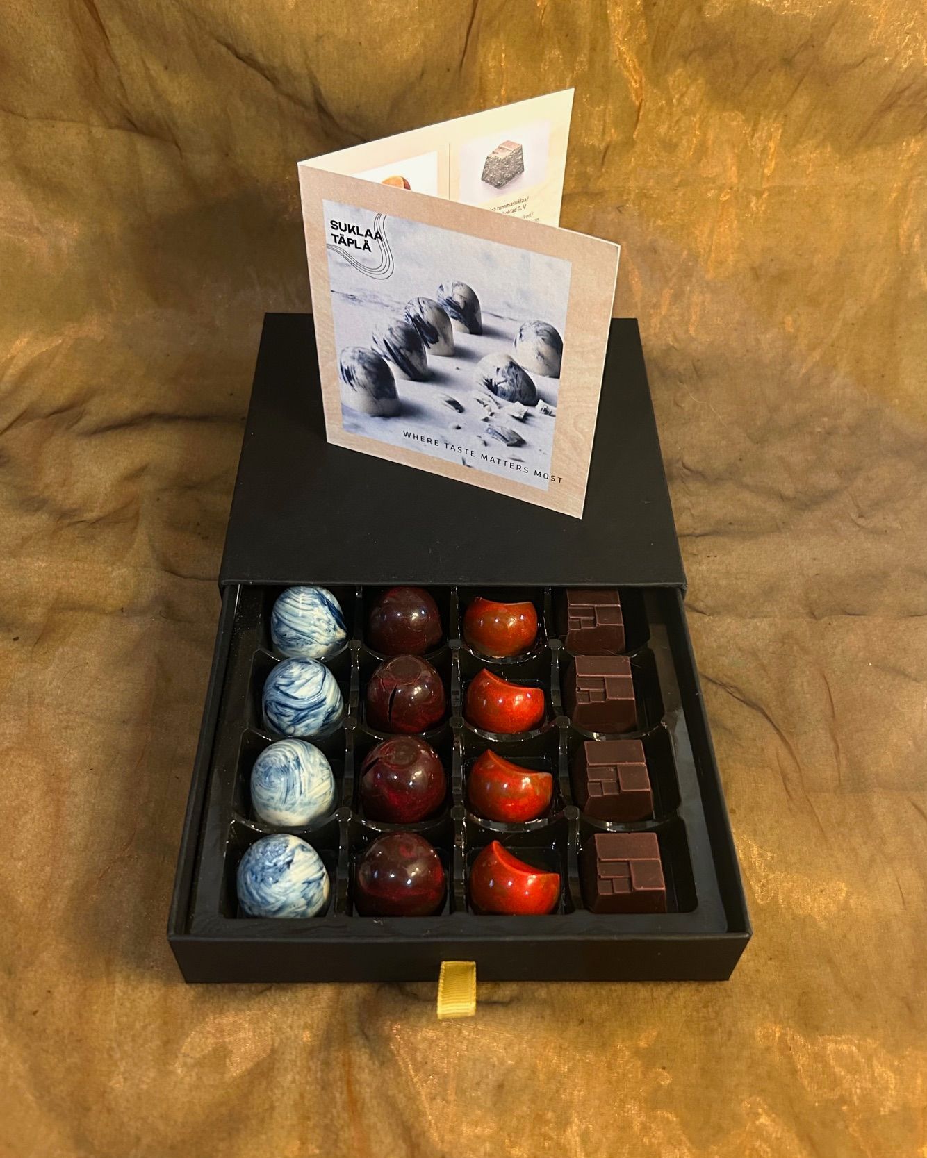 Käsintehty suklaa on ilo useammalle aistille. Kuvagalleriassamme voit ahmia herkkujamme silmilläsi ja palata kanssamme Suklaa Täplän herkullisimpiin hetkiin. Kun haluat tulla mukaan ja maistaa tuotteitamme itse, ota yhteyttä!